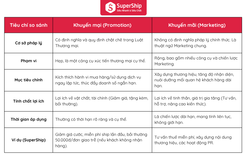 Ở trên là những thông tin SuperShip cung cấp về Phân biệt khuyến mãi và khuyến mại: Khái niệm, bản chất và ứng dụng. Hi vọng nội dung trên sẽ đáp ứng được nhu cầu đang tìm kiếm của bạn.